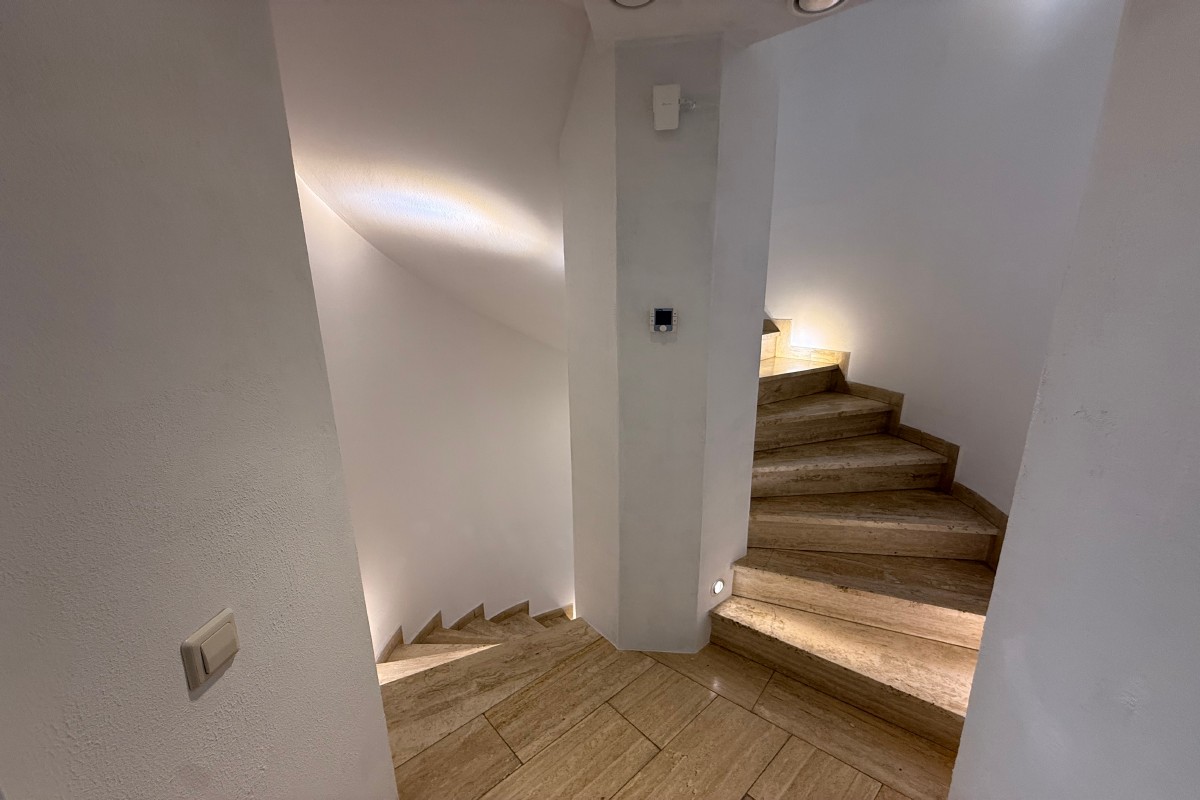 Ein absolutes Highlight ist die oberste Ebene. die als hälftig überdachter und völlig uneinsehbarer Dachgarten mit herrlichem Panoramablick gestaltet wurde. Hier bietet sich Ihnen nicht nur viel Platz für entspannte Stunden im Freien, sondern auch ein atemberaubenden Blick in die Ferne – perfekt für Sonnenuntergänge, gesellige Abende oder ruhige Momente über den Dächern der Umgebung.