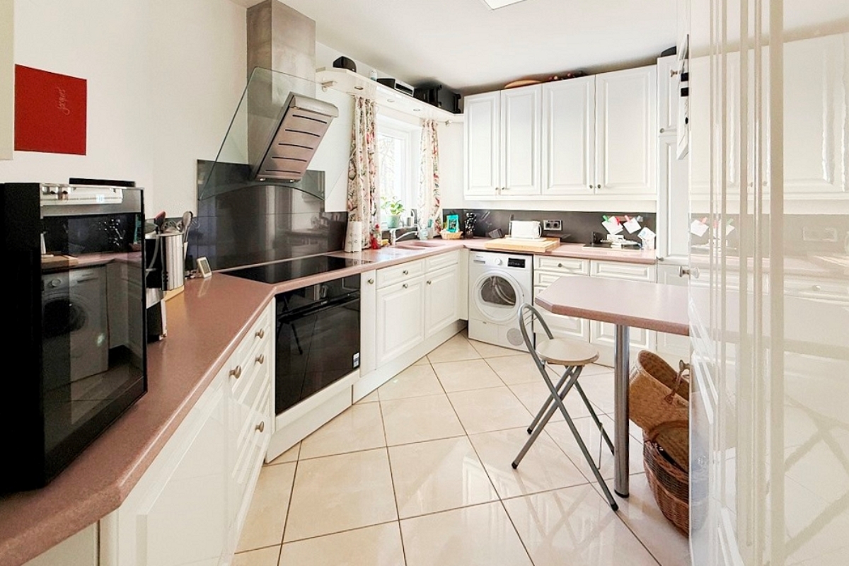 Die hochwertig ausgestattete Einbauküche fügt sich stilvoll in das Gesamtkonzept der Wohnung ein und erfüllt höchste Ansprüche an Funktionalität und Design. Zwei Balkone bieten zusätzlichen Freiraum – der dem Wohnbereich zugeordnete Hauptbalkon ist mit einer elektrischen Markise ausgestattet und lädt zu entspannten Stunden im Freien ein.