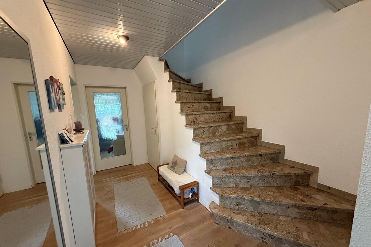 Das Haus präsentiert sich innen wie außen in einem sehr gepflegten Zustand. Zum Anwesen gehört ein gut nutzbares und gärtnerisch angelegtes Grundstück mit zwei sonnigen Terrassen und einer Garage am Haus sowie einem weiteren Stellplatz auf dem Grundstück, groß genug auch für z.B. ein Wohnmobil auf dem Grundstück.