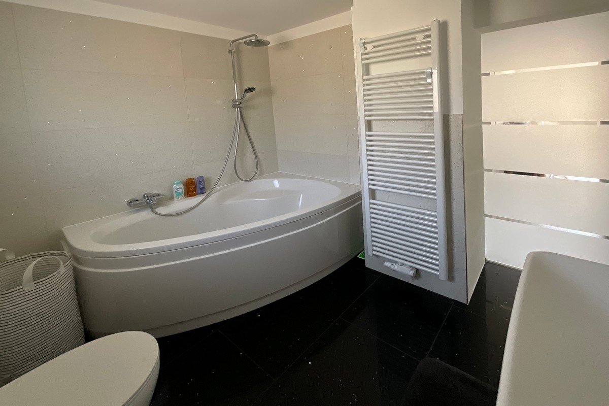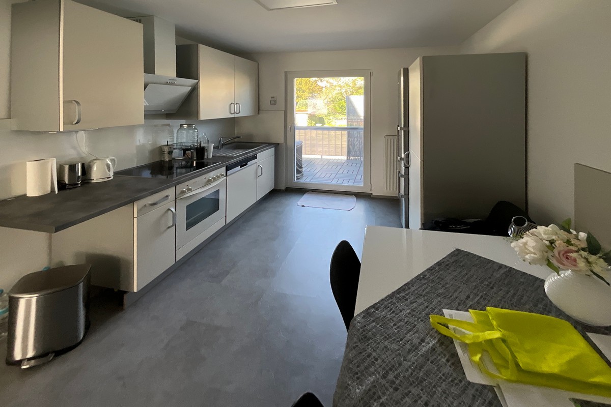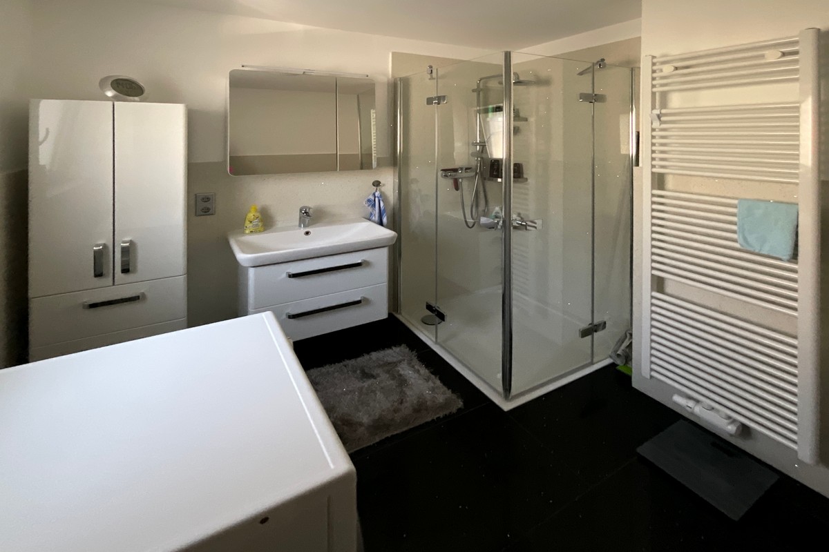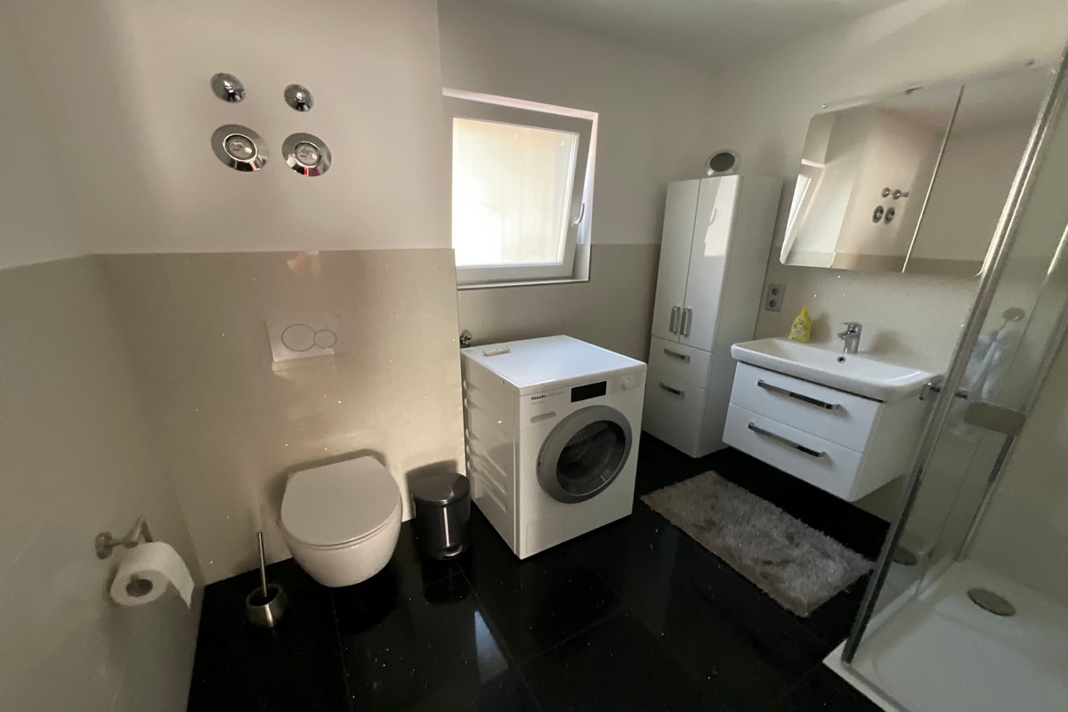 Das Obergeschoss präsentiert sich schnittgleich und ebenso modern als auch saniert mit 2 Zimmern, einer Küche sowie einem wunderbaren Tageslicht-Wannenbad.