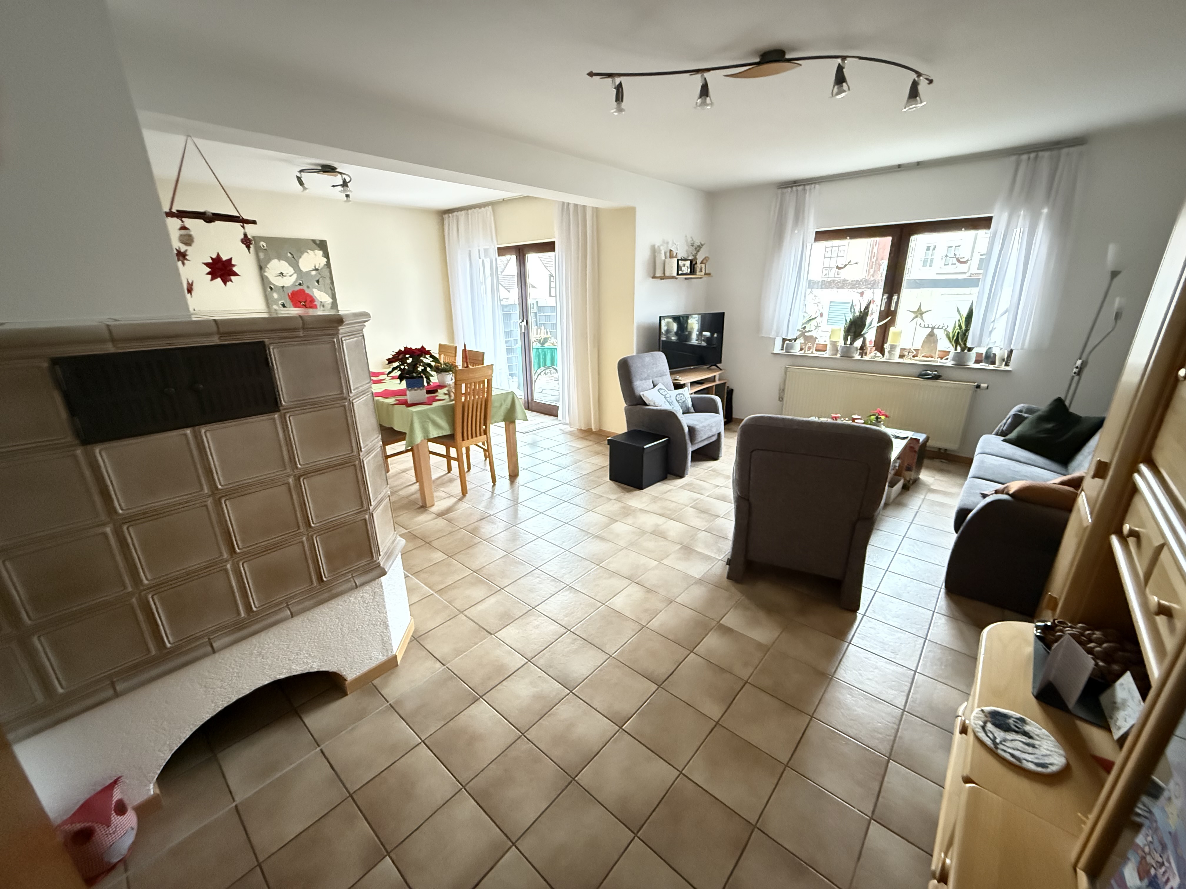 145m² Wohnfläche verteilen sich großzügig über 3 Etagen. Im Erdgeschoß betreten Sie das Haus über die wohnliche Diele mit Garderobe und Gäste-WC. Die Küche ist geräumig und modern ausgestattet und führt in das großzügige Wohn-Esszimmer mit dem gemütlichen Kachelofen und dem Zugang auf die sonnige Terrasse.