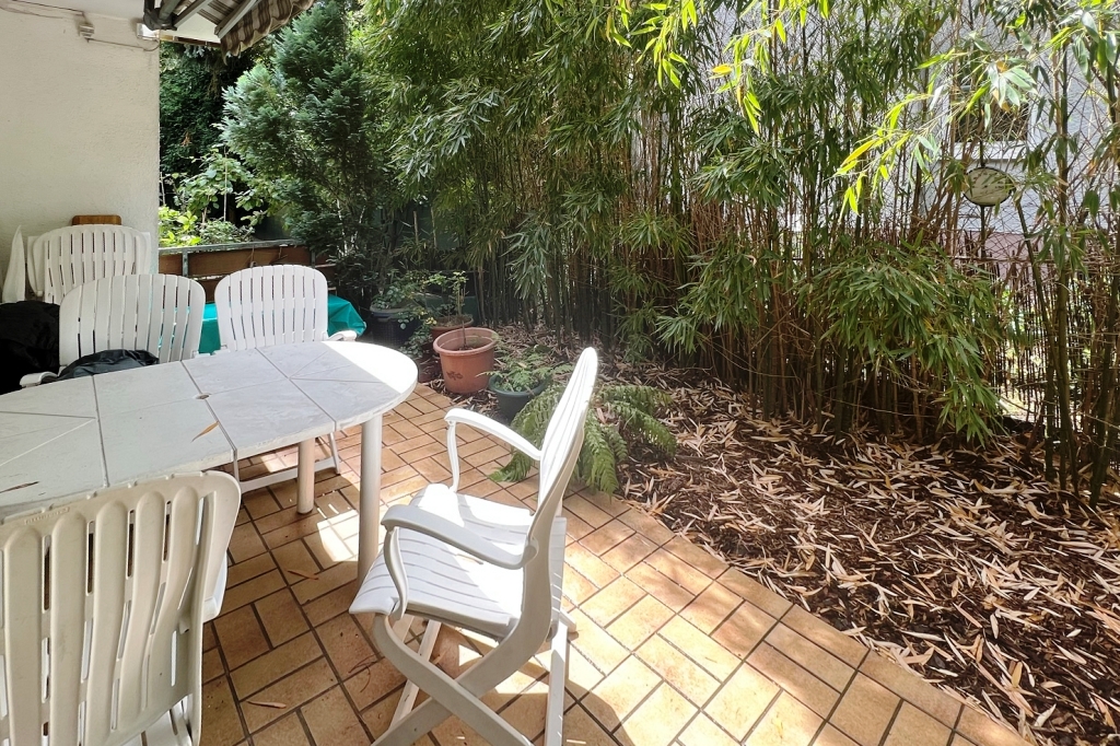 Ihr neues Zuhause bietet auf rund 90 m² ein ansprechendes Entree, 2 gut geschnittene Schlafzimmer, ein modernes Tageslichtbad mit (Dampf-) Dusche und Wanne, ein separates WC, eine voll eingerichtete Küche sowie den repräsentativ geschnittenen und breit verglasten Wohnbereich. Von hier gelangen Sie auf die große Terrasse und in den eingewachsenen Garten.