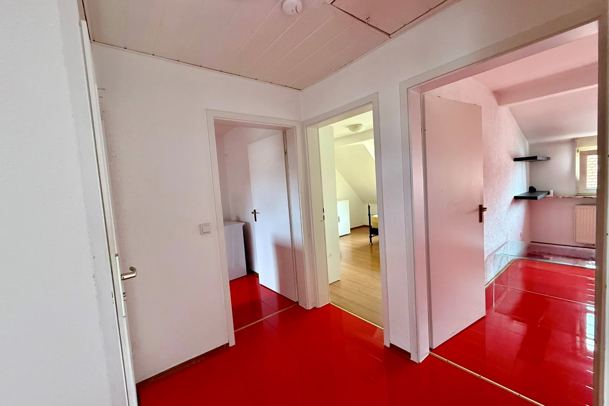 Das Haus erstreckt sich über Kellergeschoss, Erdgeschoss, Obergeschoss verfügt über insgesamt über 5 Zimmer und 2 Badezimmer. Im Dachgeschoss befinden sich weitere wohnlich ausgebaute Räumlichkeiten in Form eines Bades, einer Küche sowie zwei Räumen.
