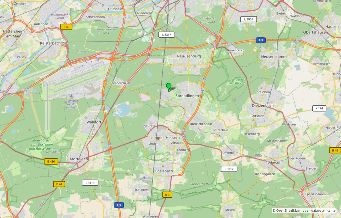 Dreieich liegt 11 km südlich von Frankfurt und Offenbach (Fahrzeit je 15 Minuten). Die Stadt entstand 1977 durch die Vereinigung von Buchschlag, Dreieichenhain, Götzenhain, Offenthal und Sprendlingen. Stadtmittelpunkt und größter Stadtteil ist Sprendlingen. Buchschlag, westlich von Sprendlingen, entstand ab 1906 als Villenkolonie. Der Ort zählt nach wie vor zu den besten Wohnlagen im südlichen Umland Frankfurt's. Die Wirtschaftsmetropole Frankfurt mit ihrem kulturellen und kommerziellen Angebot erreichen Sie in wenigen Minuten.