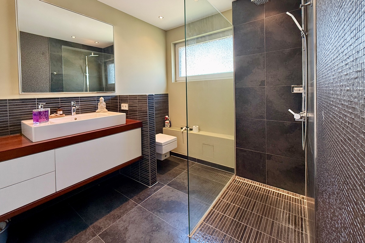 Die Wohnung liegt im ersten Obergeschoss eines gepflegten Mehrfamilienhauses aus dem Jahr 1983 und bietet rund 120 m² stilvolle Wohnfläche. Bereits der großzügige Eingangsbereich empfängt Sie mit einem einladenden Ambiente. Zwei gut geschnittene Schlafzimmer, ein praktischer Abstellraum mit maßgefertigten Einbauschränken sowie ein elegantes Tageslichtbad mit bodengleicher Dusche und ein separates Gäste-WC sorgen für höchsten Wohnkomfort.