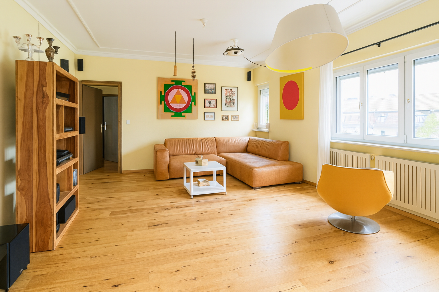 Diese lichtdurchflutete 4,5-Zimmer-Wohnung im 3. Obergeschoss eines charmanten Mehrfamilienhauses aus dem Jahr 1922 verzaubert nicht nur durch ihre Großzügigkeit, sondern auch durch ihre außergewöhnlich schöne Lage.