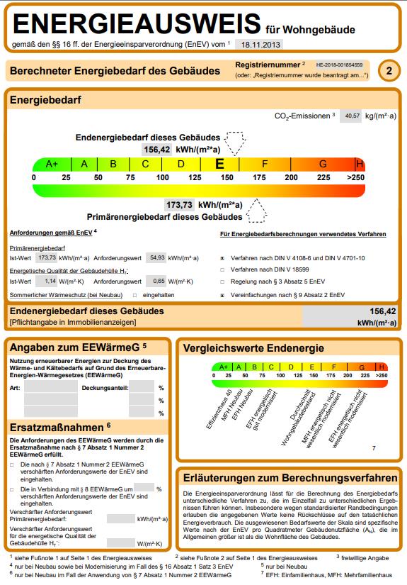 Energieverbrauchskennwert: 156,42 kWh