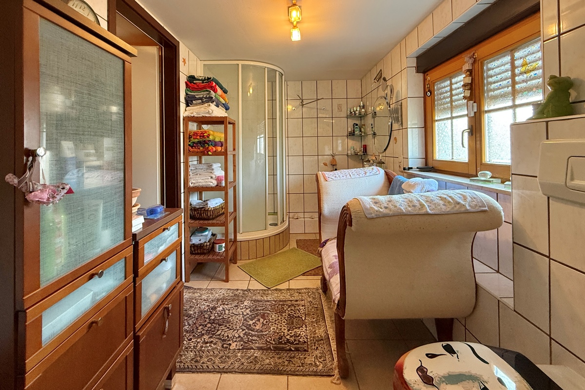 Das Haus ist voll unterkellert. Der Keller ist sowohl über die Küche als auch über einen separaten Außenzugang erreichbar. Neben zwei Kellerräumen – einer davon beheizt und tagesbelichtet – stehen hier ein Badezimmer sowie ein kleiner Saunabereich zur Verfügung, was den Nutzwert dieser Ebene deutlich erhöht.