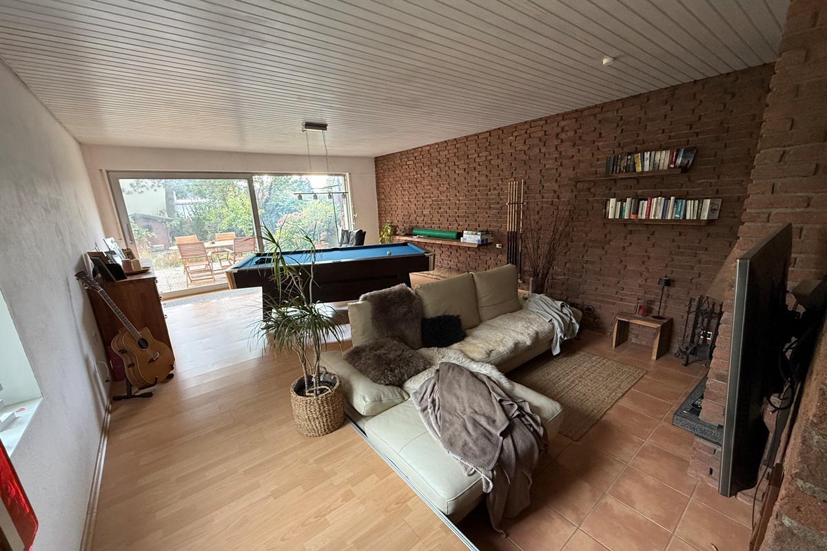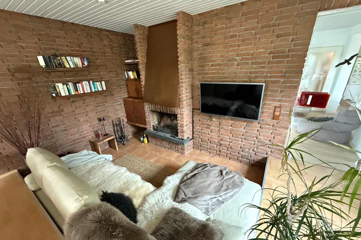 140m² Wohnfläche verteilen sich im Erdgeschoss auf den einladenden Eingangsbereich mit dem sich anschließenden Gästezimmer oder Büro, einem Gäste-WC und der geschmackvoll gestalteten Treppe ins Obergeschoss. Die Küche ist modern sowie offen gestaltet mit Blick in den Garten. Der Küche schließt sich der Essbereich und ein kleiner Loungebereich an. Von hier aus haben Sie zudem Zugang in den vorderen Garten. Der Anbau beherbergt ein großräumiges Wohnzimmer mit einer gemütlichen Kaminecke und dem Zugang auf die Sonnenterase und den schön angelegten Garten mit Teich.