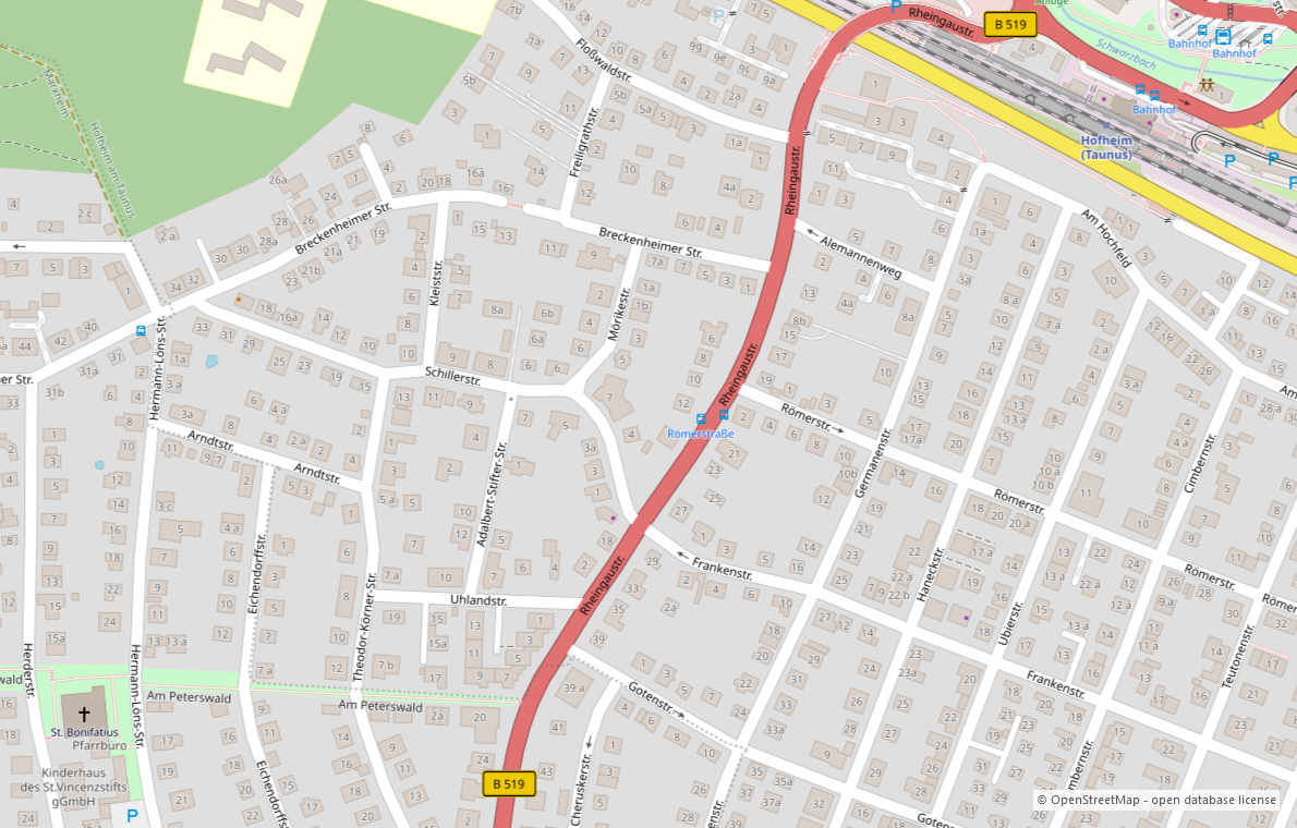 Hofheim - in der Mitte des Rhein-Main-Gebietes mit den sechs Stadtteile Diedenbergen, Langenhain, Lorsbach, Marxheim, Wallau und Wildsachsen liegen einmalig idyllisch am Taunushang zwischen Frankfurt und Wiesbaden.Die Innenstädte von Frankfurt am Main, Wiesbaden und Mainz sind nur rund 20 Kilometer entfernt. Die Anbindung an das überregionale Verkehrsnetz ist äußerst günstig: Drei der sechs Stadtteile haben unmittelbaren Anschluss an die Autobahn A 66 (Wiesbaden - Frankfurt). Mit der S-Bahn, der Regionalbahn oder dem Regionalexpress besteht eine direkte Verbindung nach Frankfurt am Main.